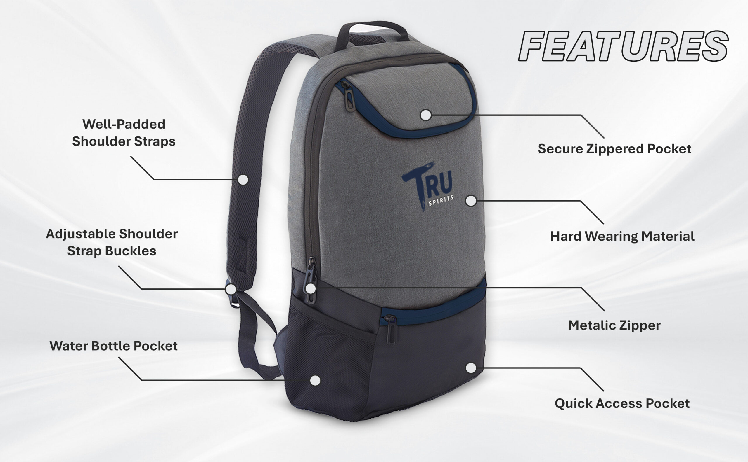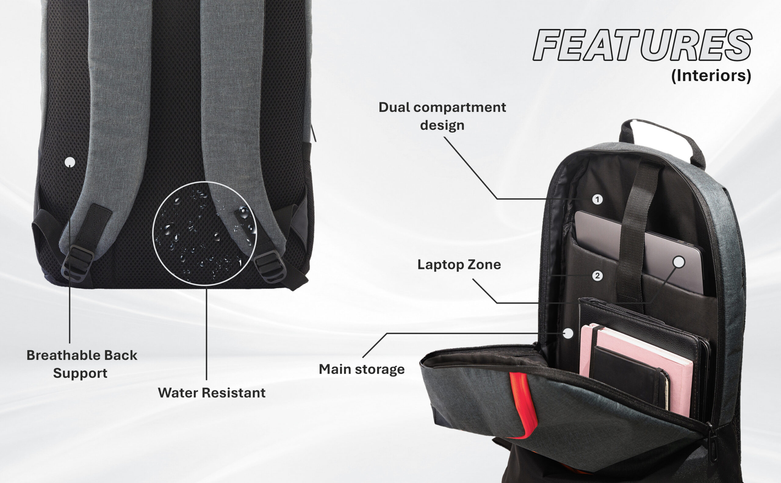 - Versatile Design — Perfect for travel, office, and college with a modern grey and black scheme